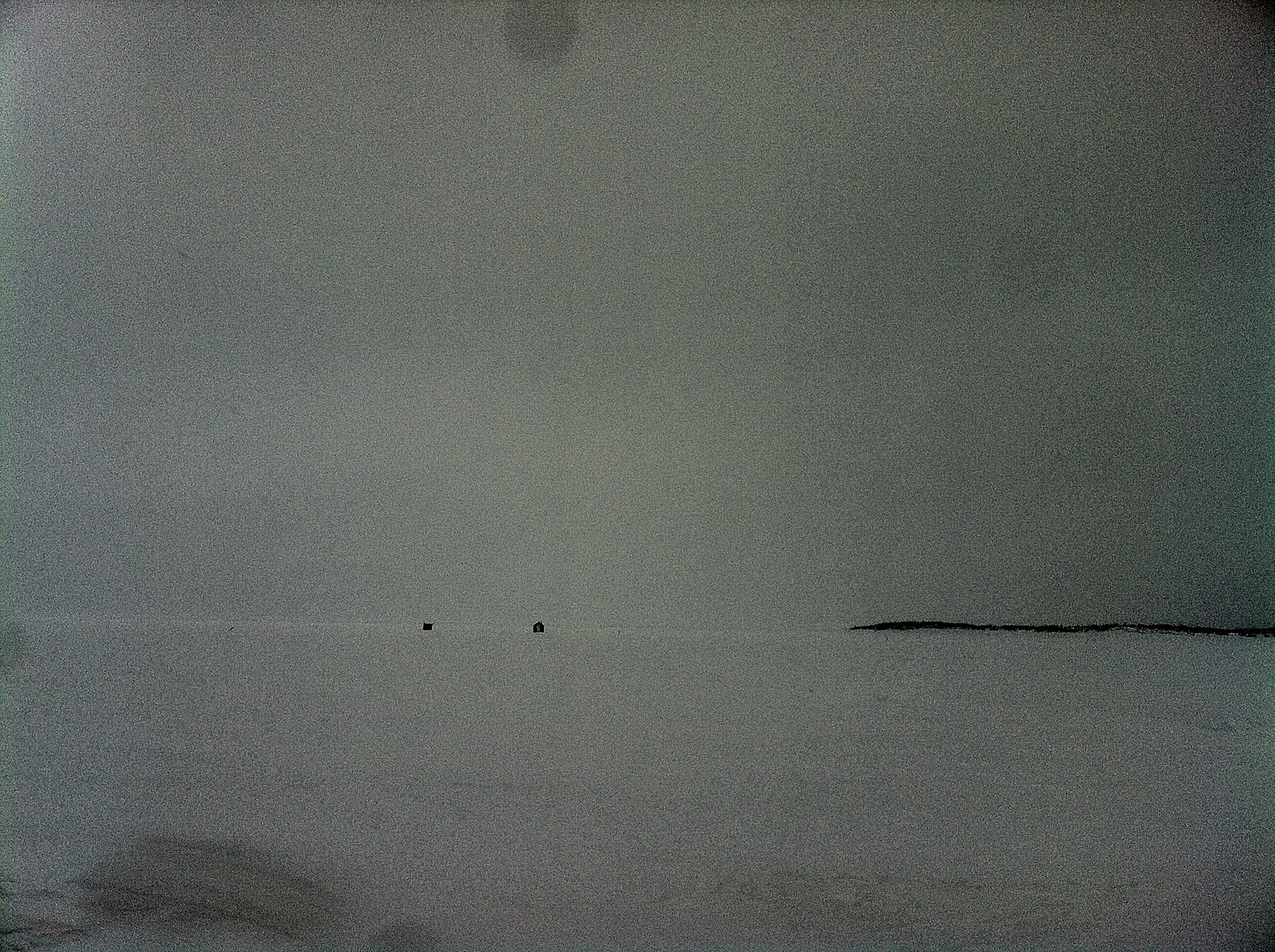 La lagune gelée se confond avec la dune, au loin. Enfouis sous la glace et la neige, on ne distingue plus où finit la terre et où commence l’eau. Aller vérifier devient alors pour moi la chose la plus importante au monde. Je nous habille, patiemment. On sort en traineau, pour marcher longtemps sur la glace.
