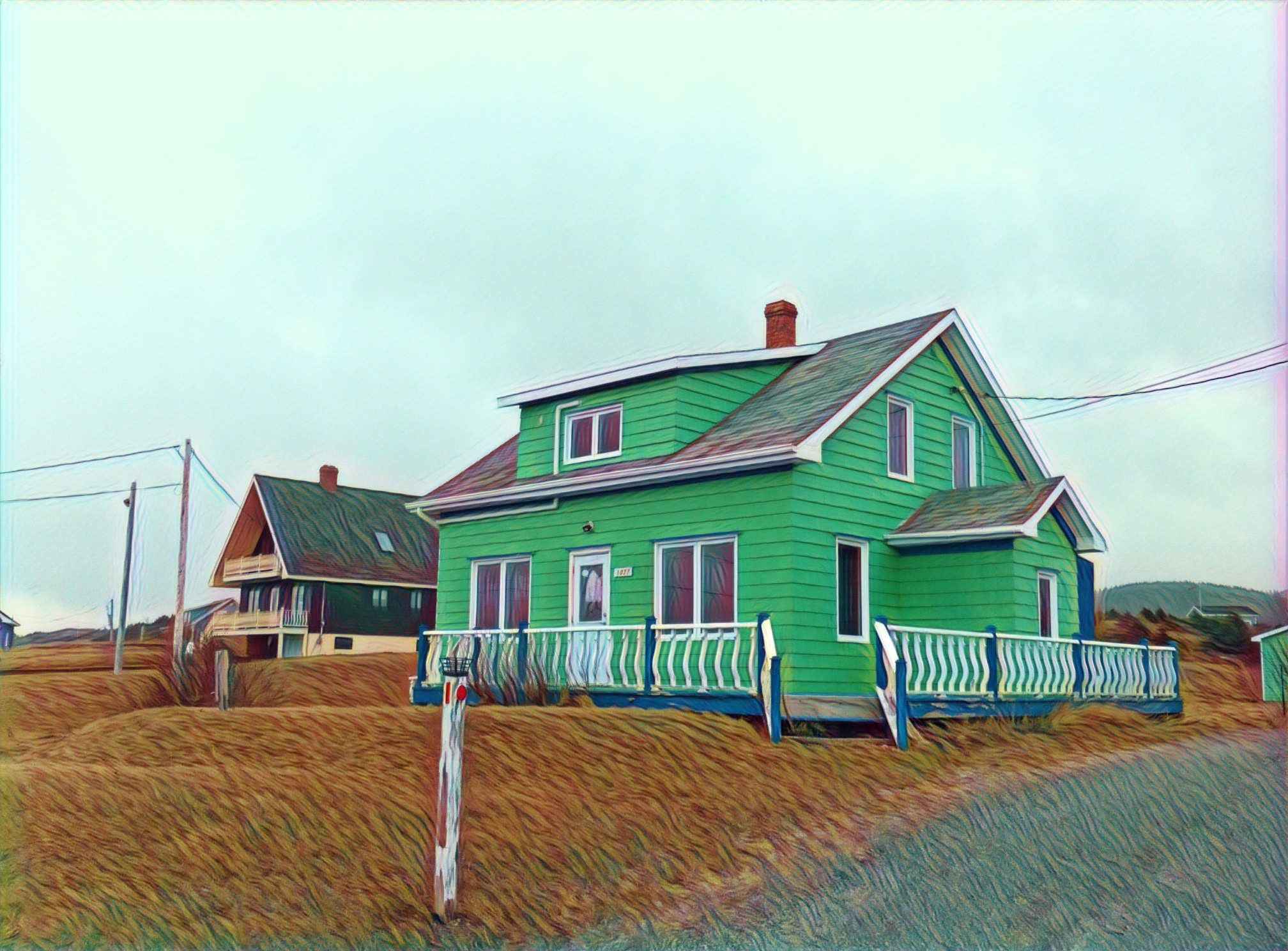 La maison n’était pas touristique; elle n’avait pas une vue à couper le souffle (pour les Îles, on s’entend…). Elle était fonctionnelle, mais aurait mérité un peu d’amour. La peinture vert électrique des bardeaux écaillait. Certaines lattes du plancher flottant se déplaçaient. Je me suis cogné l’orteil sur le plancher inégal près de ma porte de chambre de nombreuses fois; le joint était fait en discret duct tape bleu. J’aimais arpenter de long en large le deuxième étage en effleurant le mur en préfini.